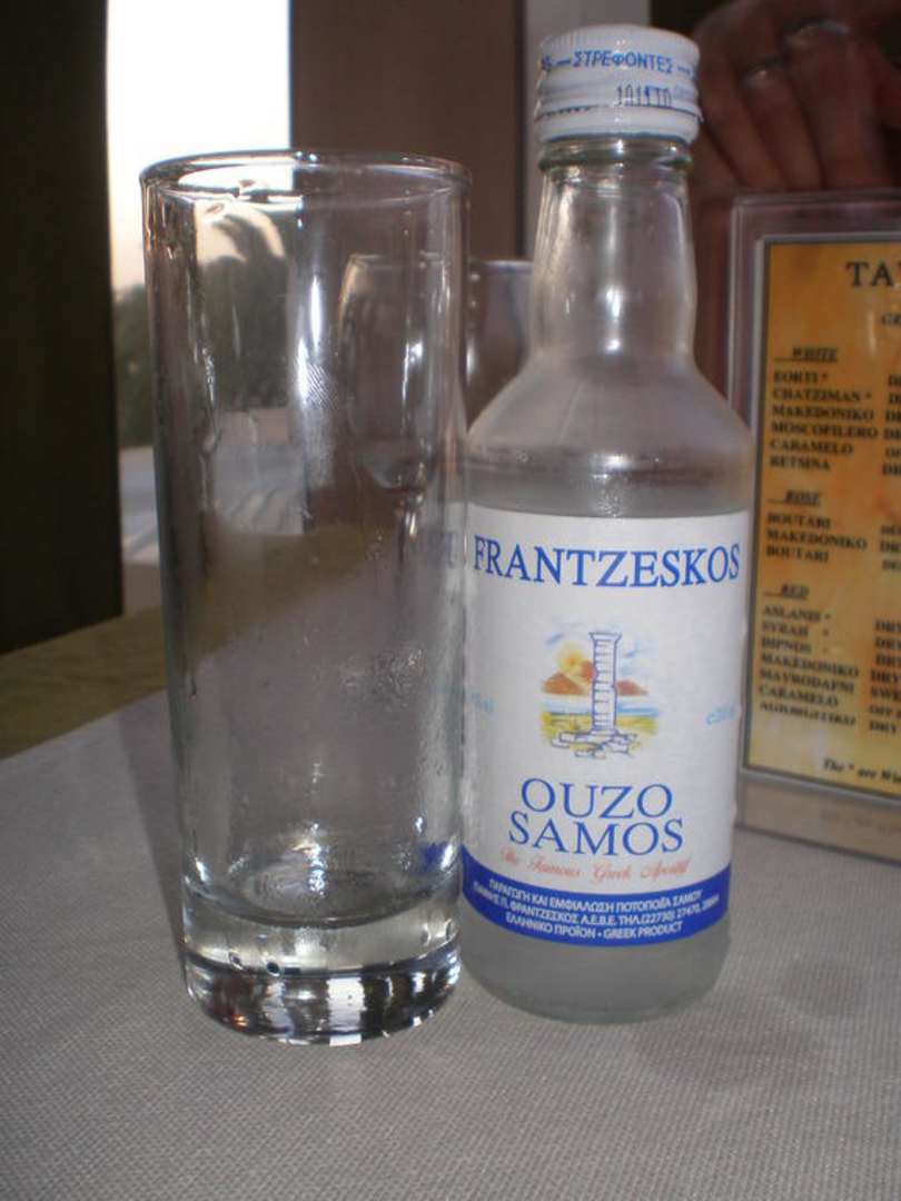 Das ist die Grieschiche Art ein Ouzo zu trinken. Nicht wie in Deutschland