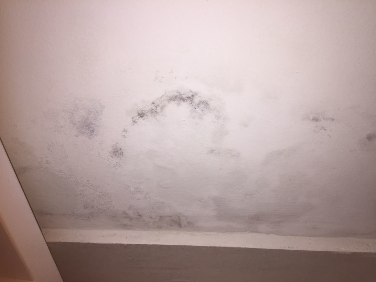 Schimmel im Familienzimmer, durch Vorhang verdeckt.