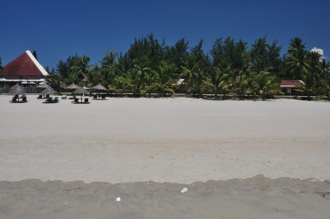 Der wunderschöne Hotelstrand, im Hintergrund das Poolgebäude