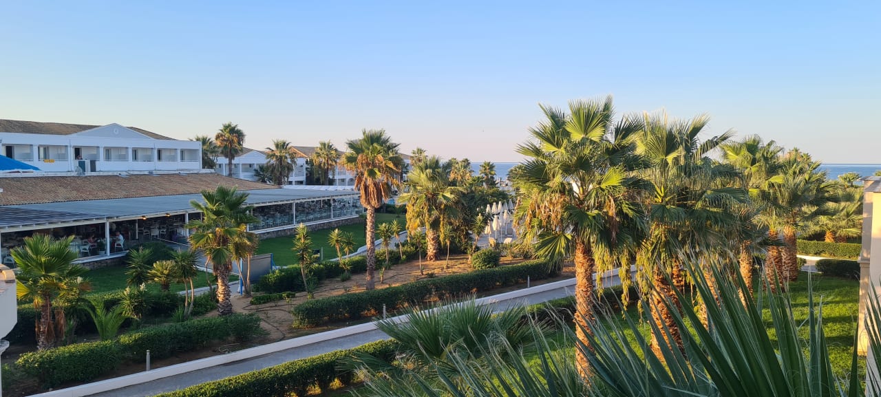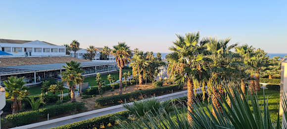 AusblickBlick auf die Gartenanlage und das Hauptrestaurant Elias, in dem man sehr schön innen aber auch aussen essen kann