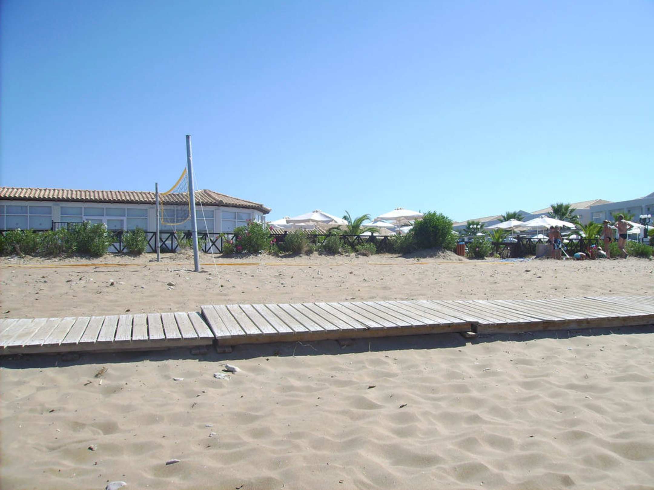 StrandBlick vom Strand auf die Hotelanlage mit Beach-Volleyball Platz