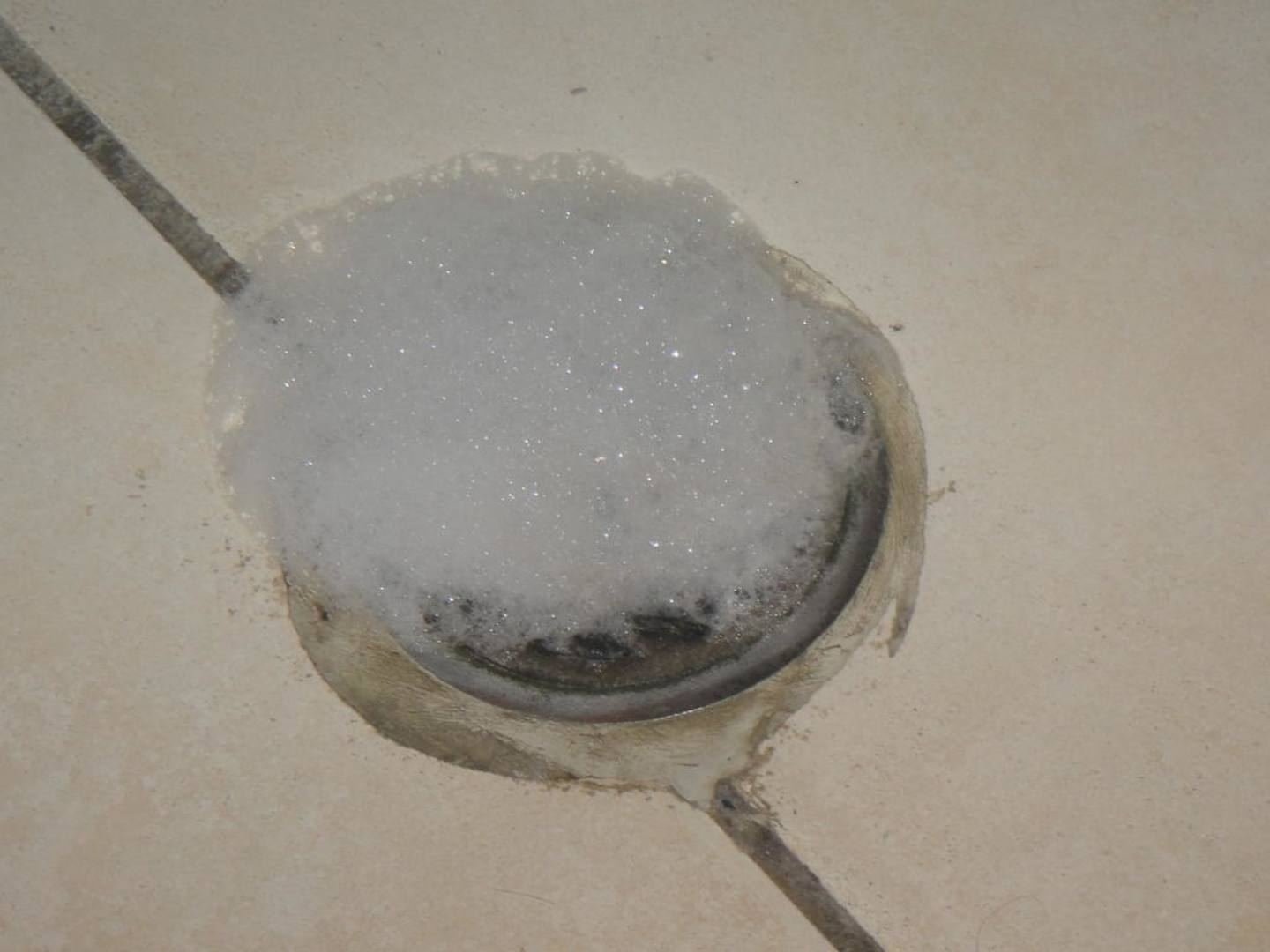 AbwasserkanalSo sah es nach dem duschen aus. Der ganze Schaum kommt aus der Öffnung raus.
