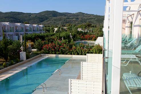 AußenansichtVon unserem Zimmer (415) aus auf Wohnbereich und zugehörigen Pool