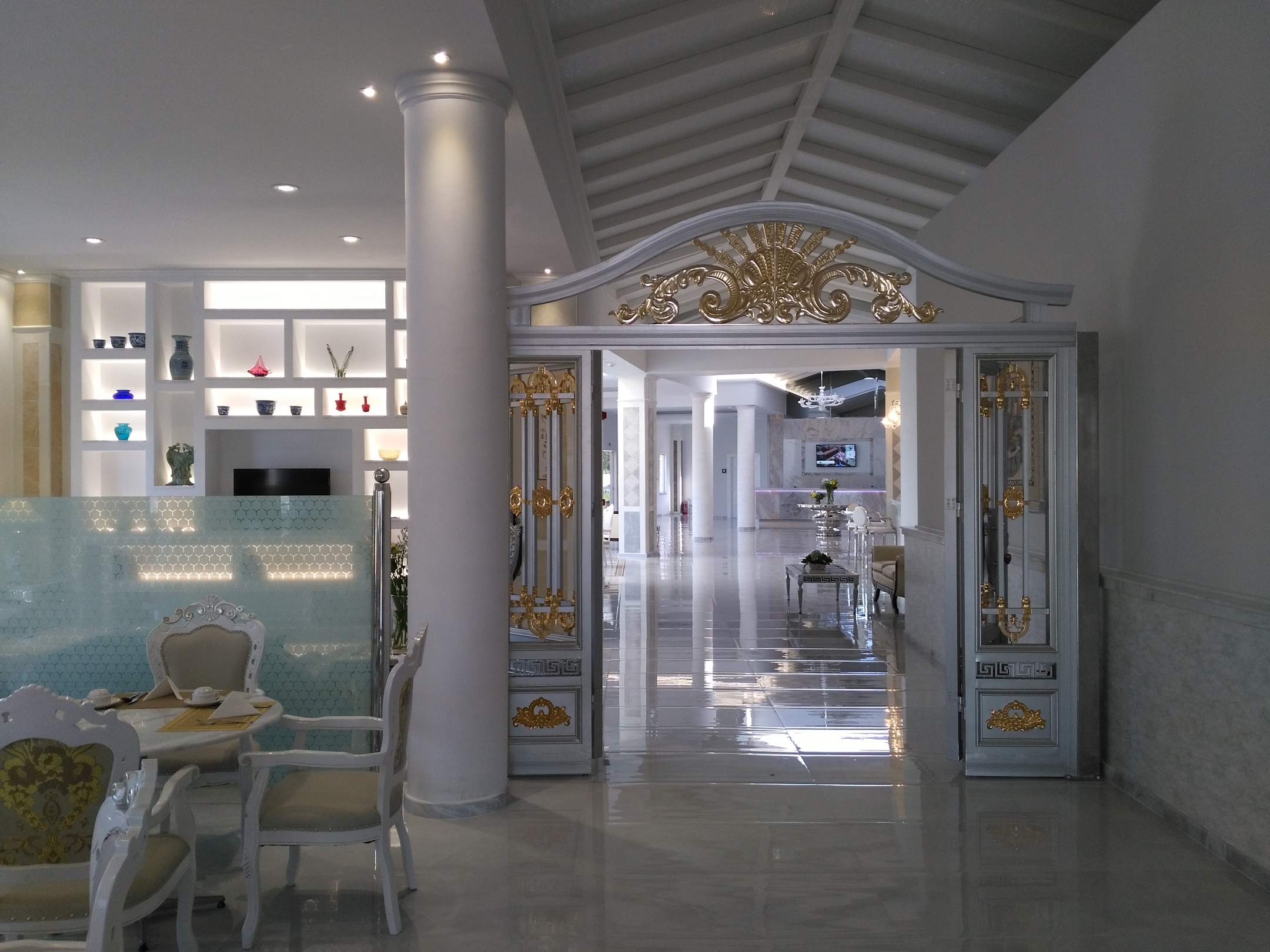 Blick vom Restaurant in die Lobby