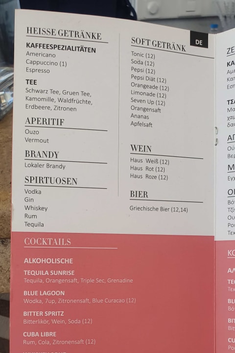 Getränkekarte. Mehr gab es nicht.