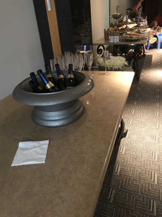 GastroMal schlechtes Wetter. Daher sind wir mit den Kindern in den Kinderspielraum gegangen. Dort war für die Erwachsenen ein kl, Buffet aufgebaut, und für die Kinder auch. Dazu gab es Sekt. Einfach um die Stimmung aufzuhellen an so einem Regentag. Nett :)