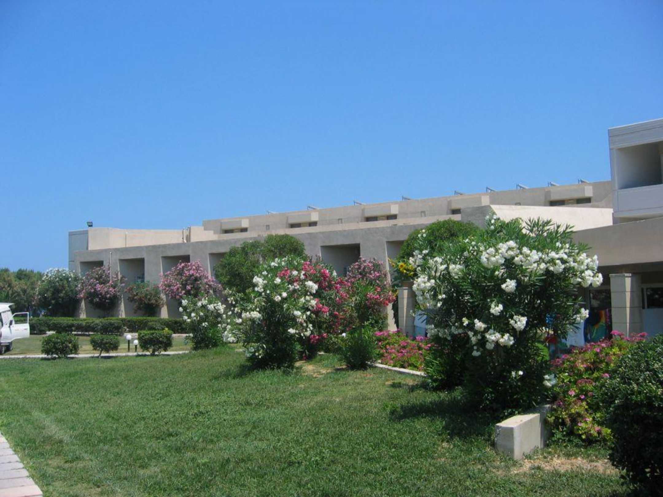 Blick auf die Rückseite des Hotels vom Strand aus