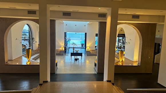 Blick vom Eingangsbereich zum Pool