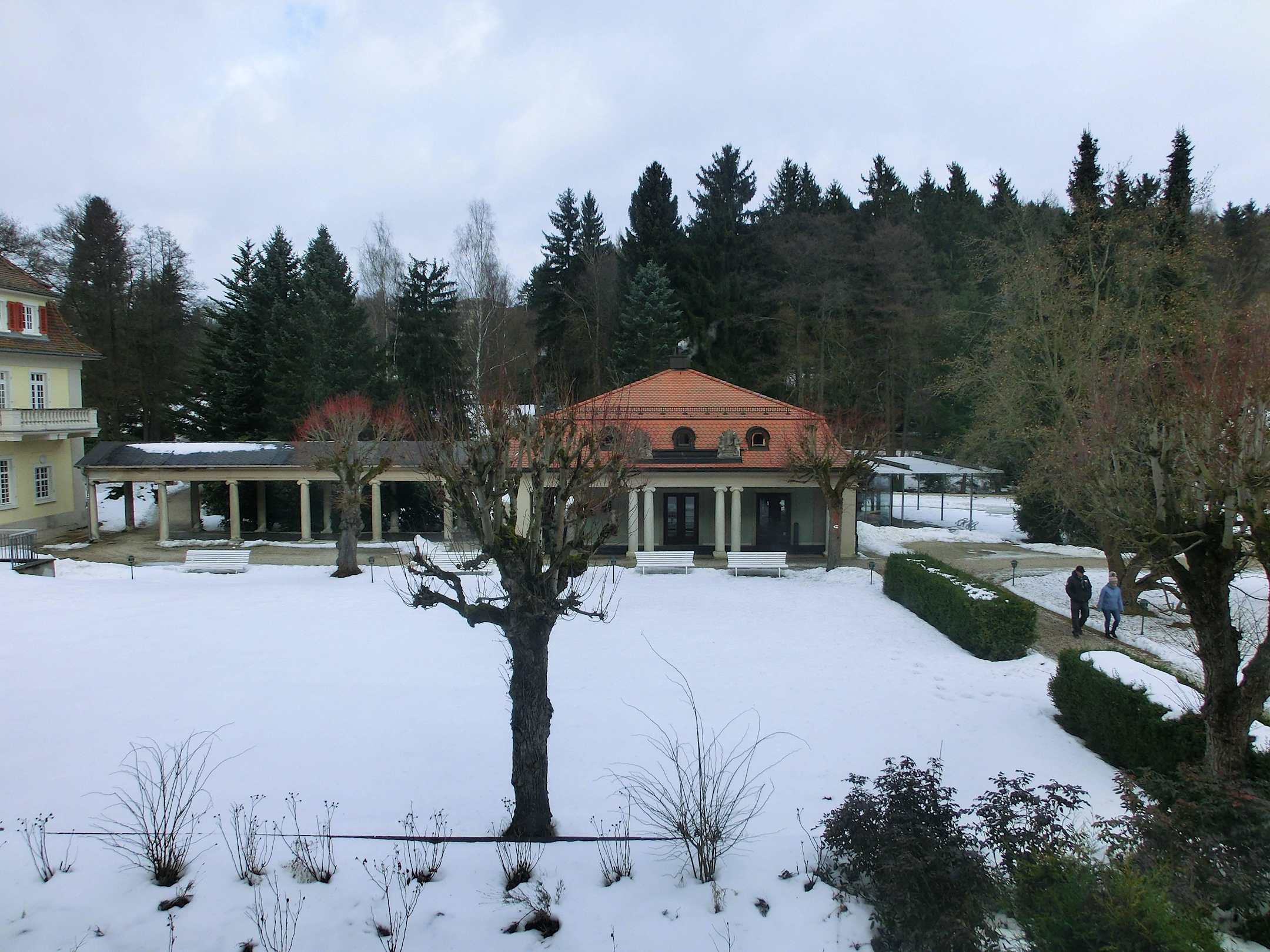 Blick von Kuranlage zur Trinkhalle