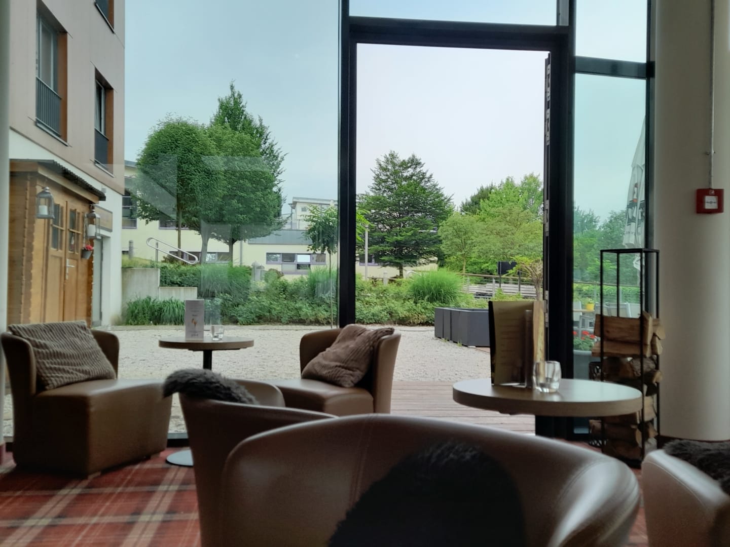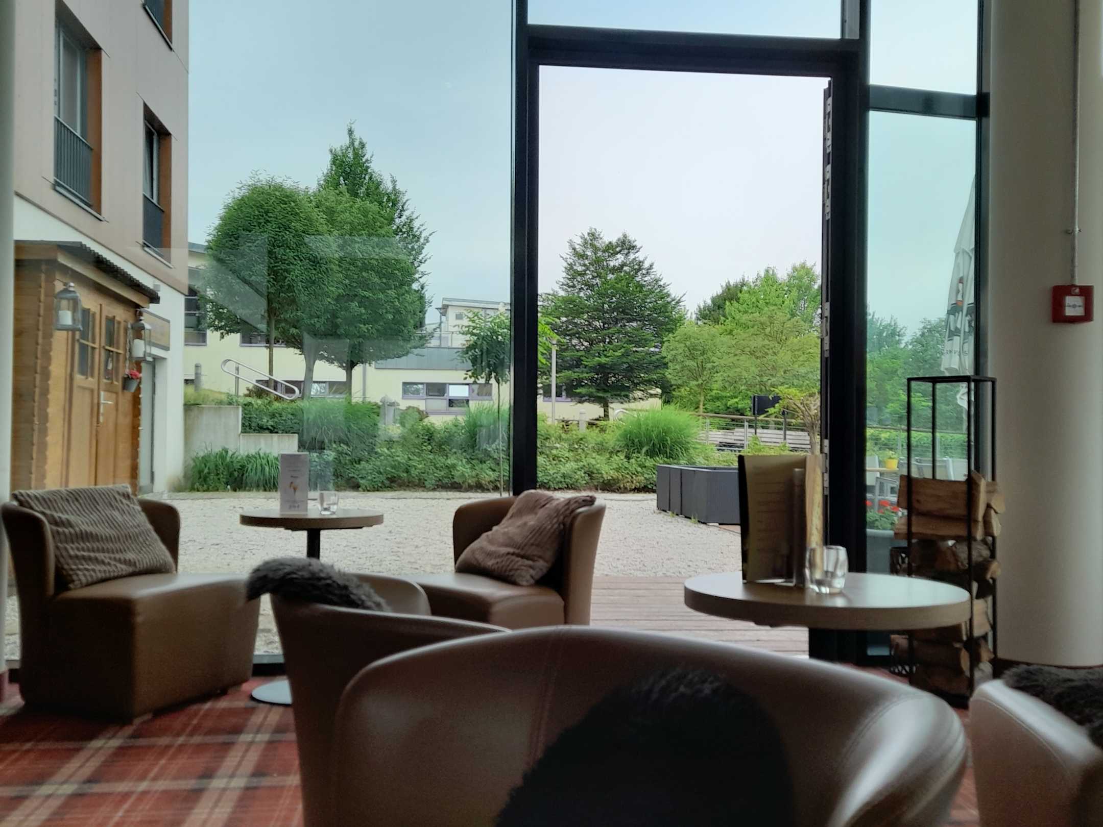 Hotelbar mit Blick auf Terrasse und Therme