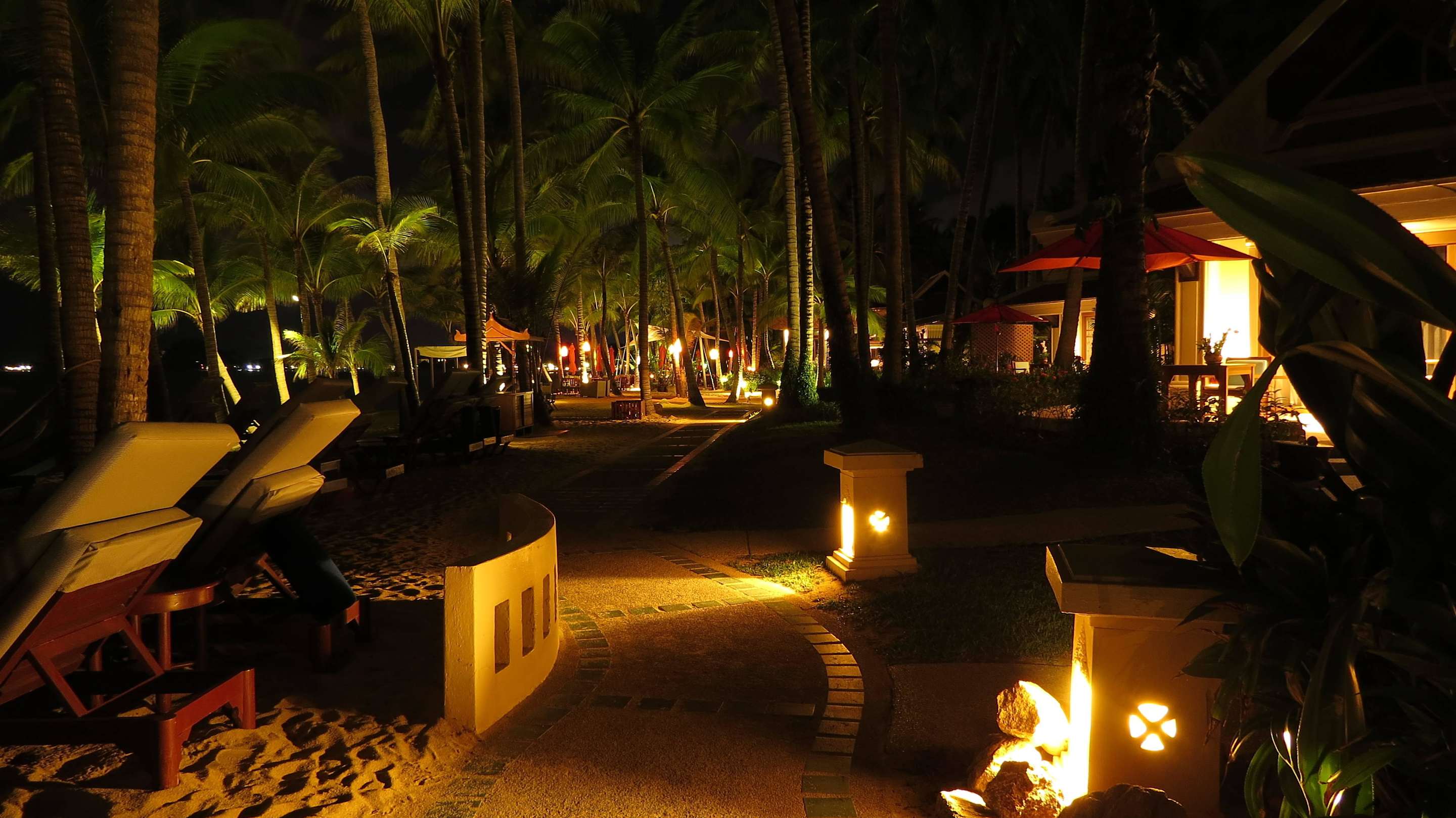 Weg auf dem Strand in der Nacht