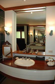 Eines der zwei Waschbecken im Badezimmer