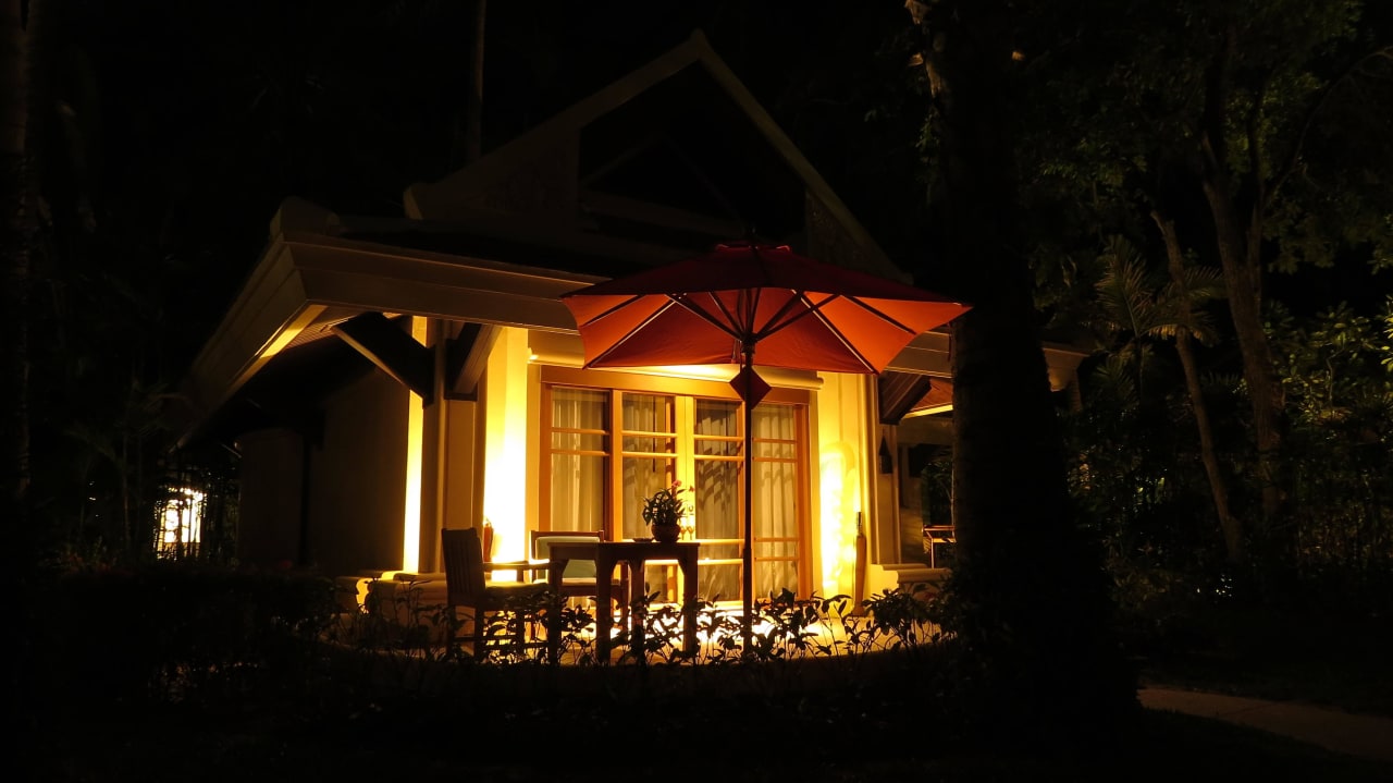 Villa an dem Strand in der Nacht
