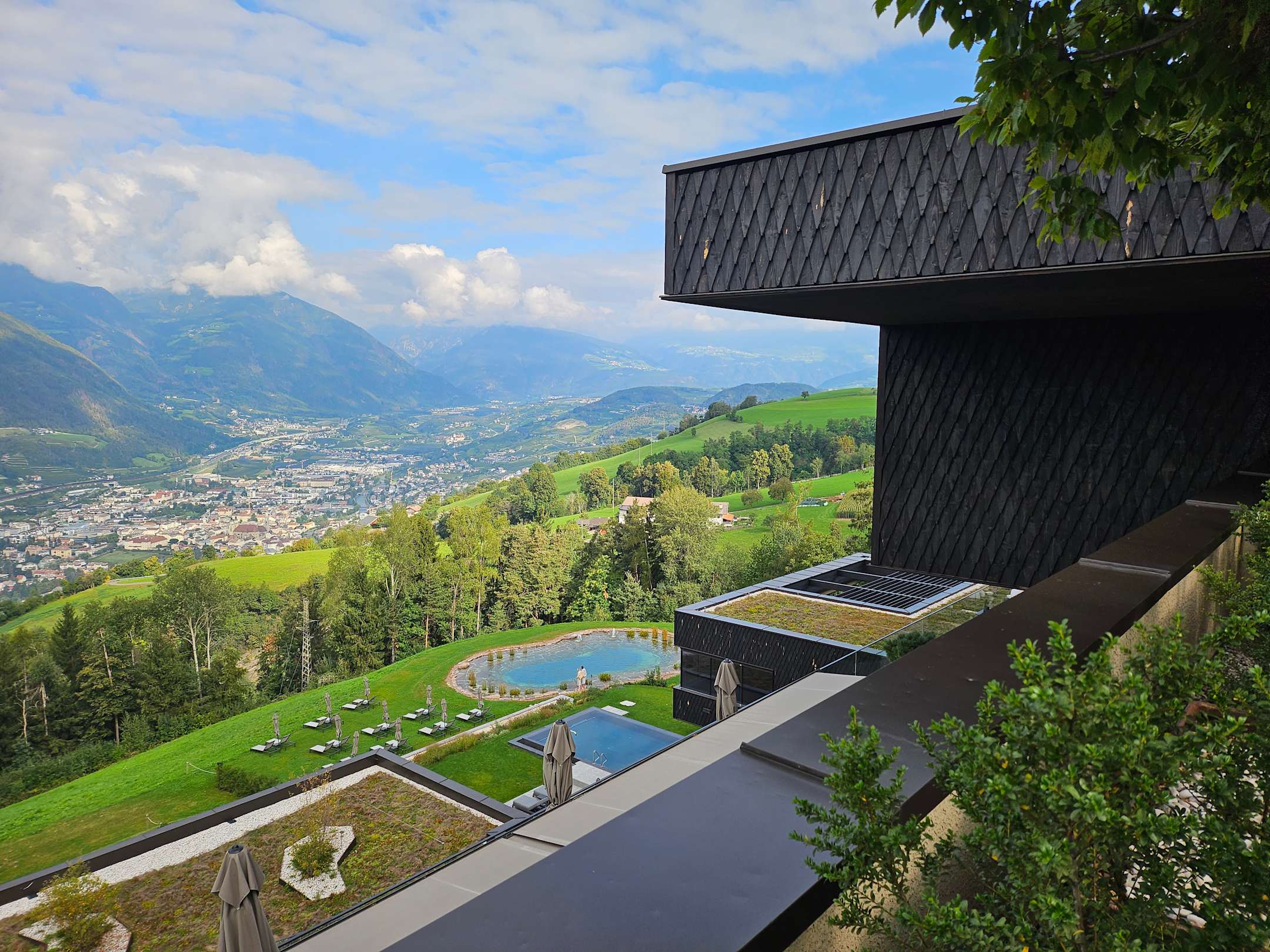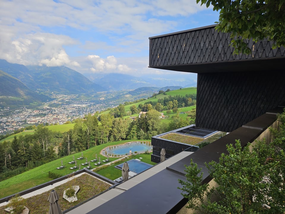Blick vom SANTRE auf pool, Naturteich und Brixen