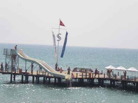Hotelsteg mit Wasserrutsche