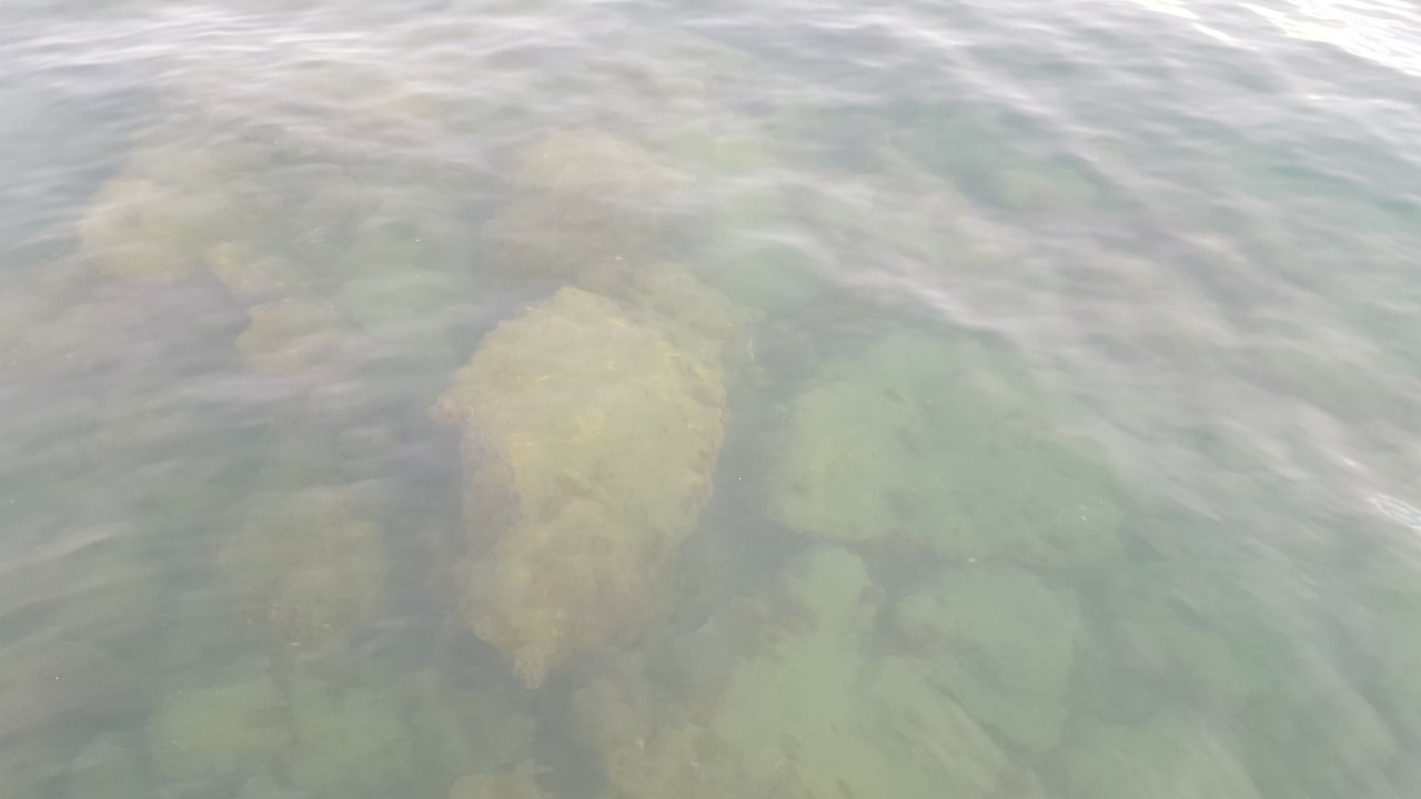 Steine im Wasser vom steg fotografiert