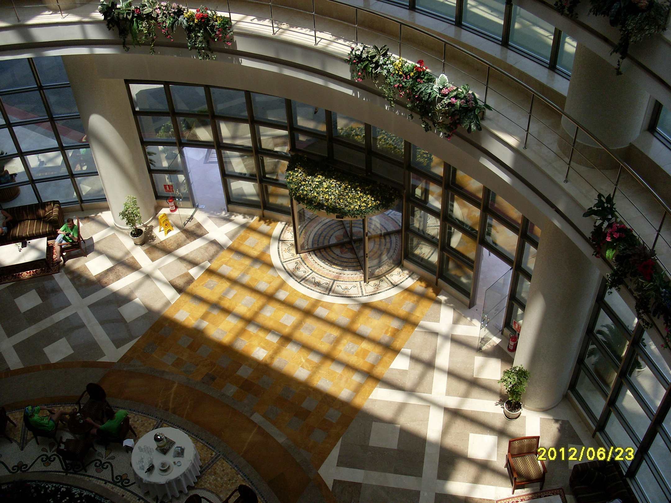 Blick aus der fünften Etage auf Eingang