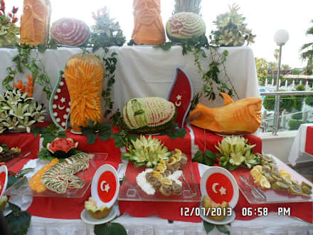 Kunstvolle Büffetdeko, selbstgeschnitzt