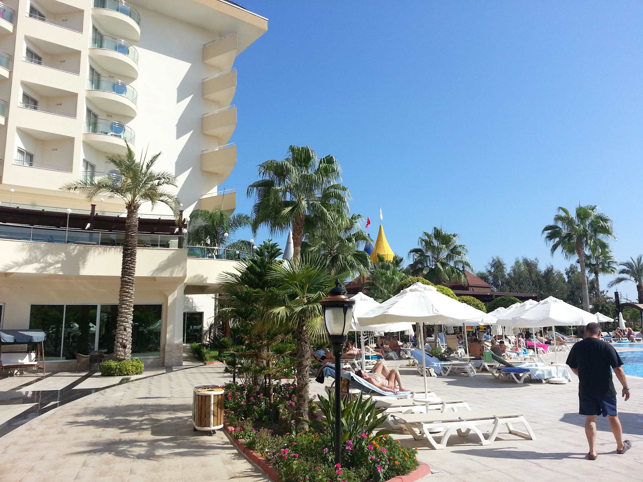 Rechts Pool, links Restaurant