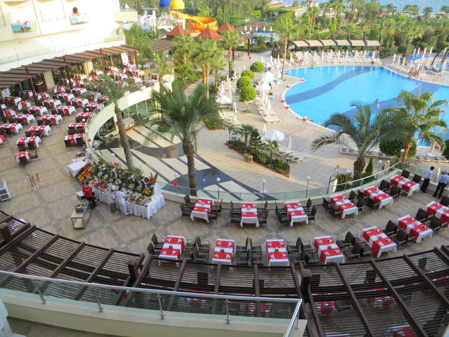 Blick auf die Außenterrasse vom Restaurant