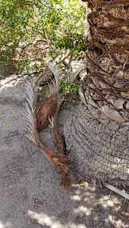 Abgefallene Palmwedel, lage Tage in der Gegend rum
