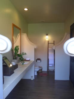 offenes Badezimmer mit direktem Zugang zum Garten