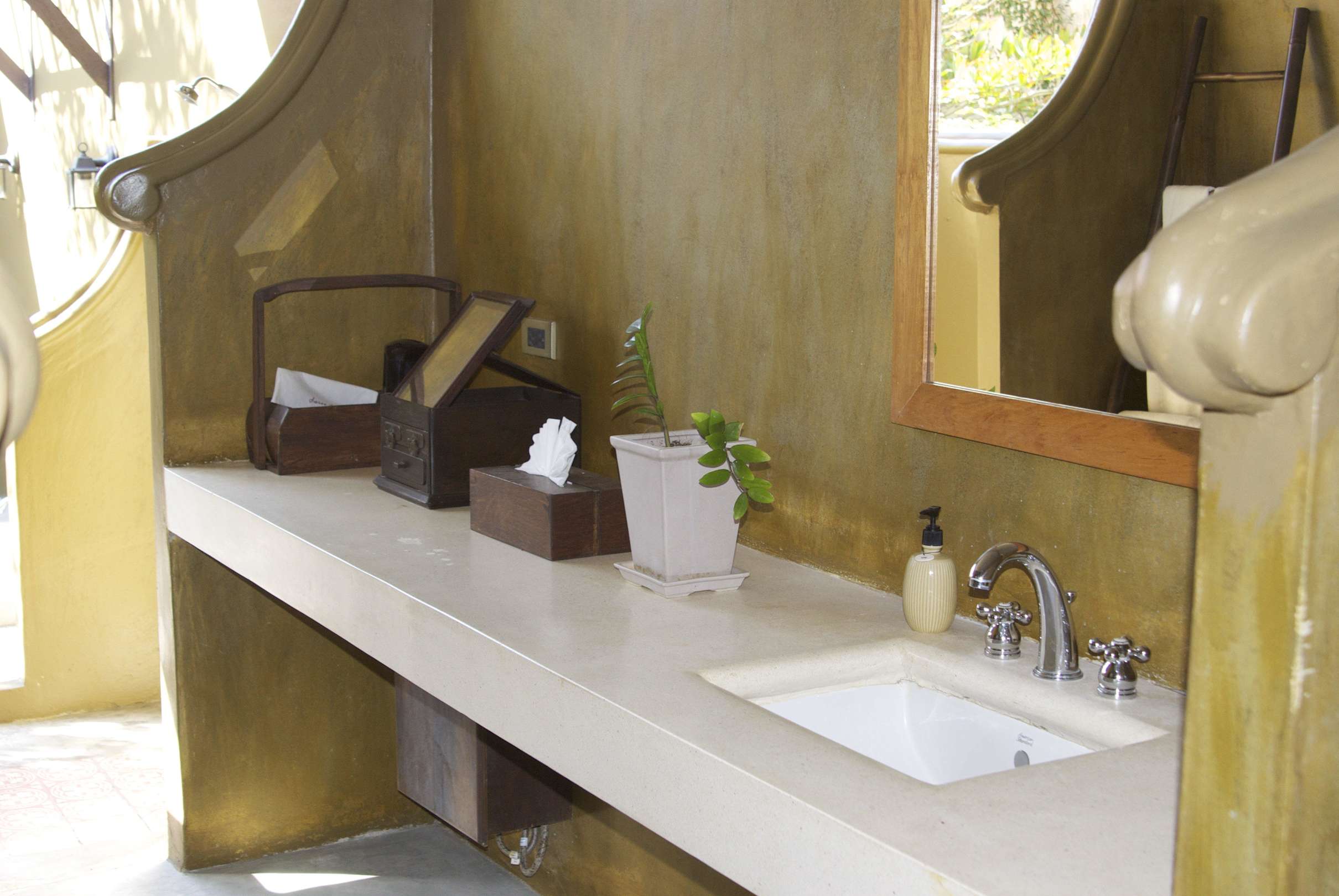 Offenes BadezimmerFön und ein Wasserkochen stehen in jedem Hotelzimmer. Seife, Spülung sowie Shampoo werden auch gestellt.
