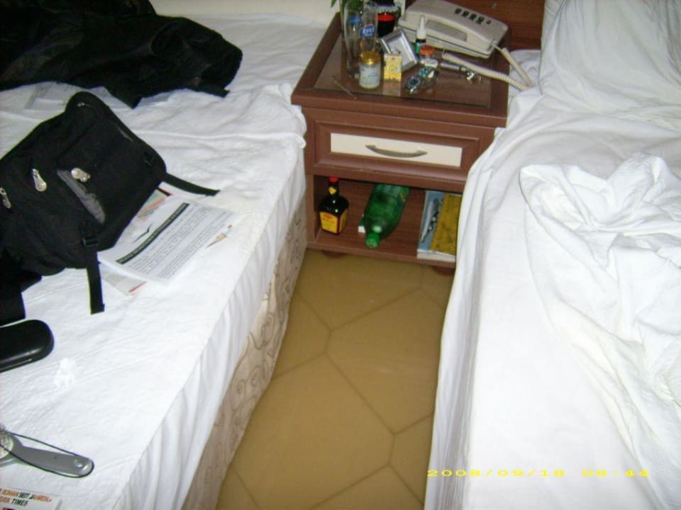 ÜberschwemmungNach dem das Abwasser dann auch die Hotelbetten erreicht hatte (ca. 4 cm hoch) wollten wir ein Ersatzzimmer. Leider reagierte die Hotelleitung überhaupt nicht. Erst der Notruf an die FTI-Zentrale in Antalya ermöglichte ein Zimmerwechsel.