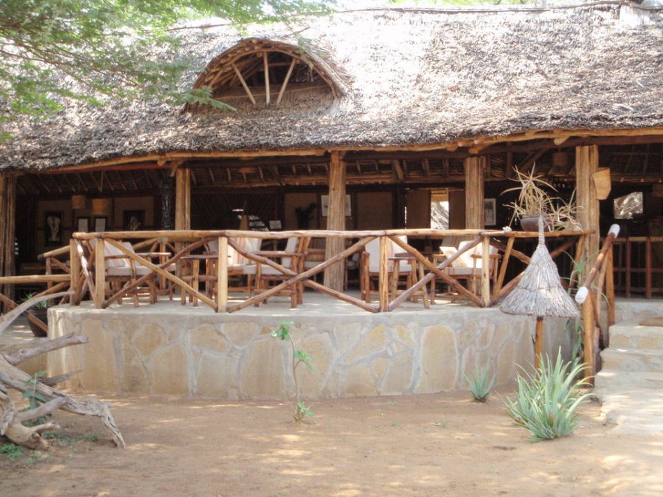 Restaurant - TerrasseHier kann man vor und nach dem Abendessen gemütlich sitzen und den Blick auf das beleuchtete Wasserloch genießen.