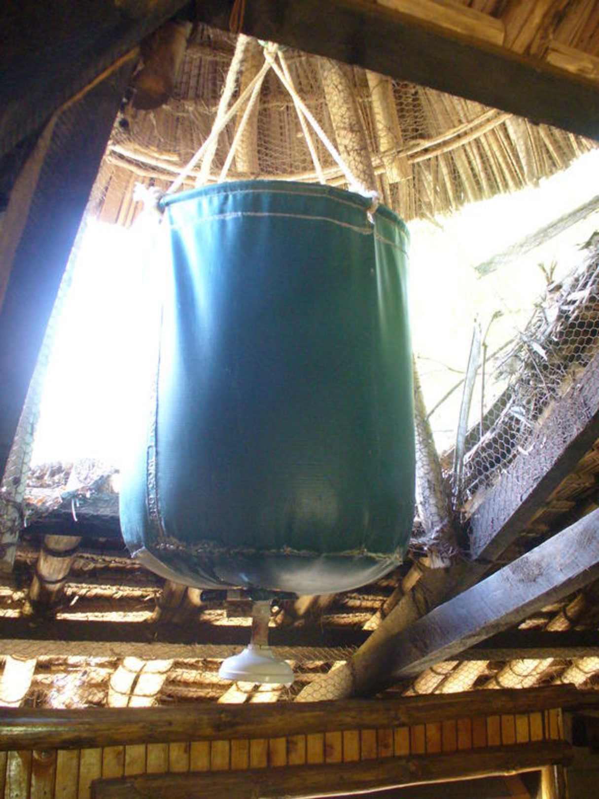 wird abends zum Duschen mit warmen Wasser gefüllt