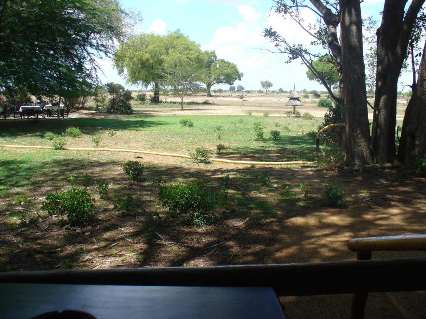 Blick vom Zelt zum Wasserloch