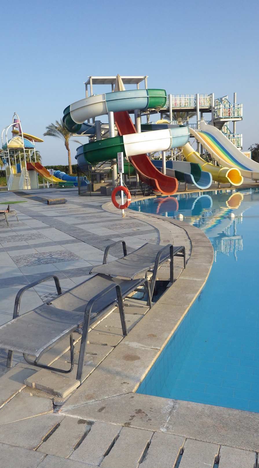 Poolwartungsbereich wird mit hässlichen Liegebetten abgedeckt, deswegen findet dort auch keine rRinigung statt - sehr unhygienisch - auch wird zuviel an CHLOR verwendet - bei windstille stinkt es 50m weit sogar bis ins Zimmer..