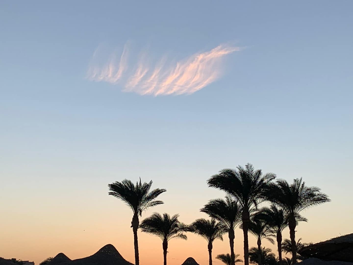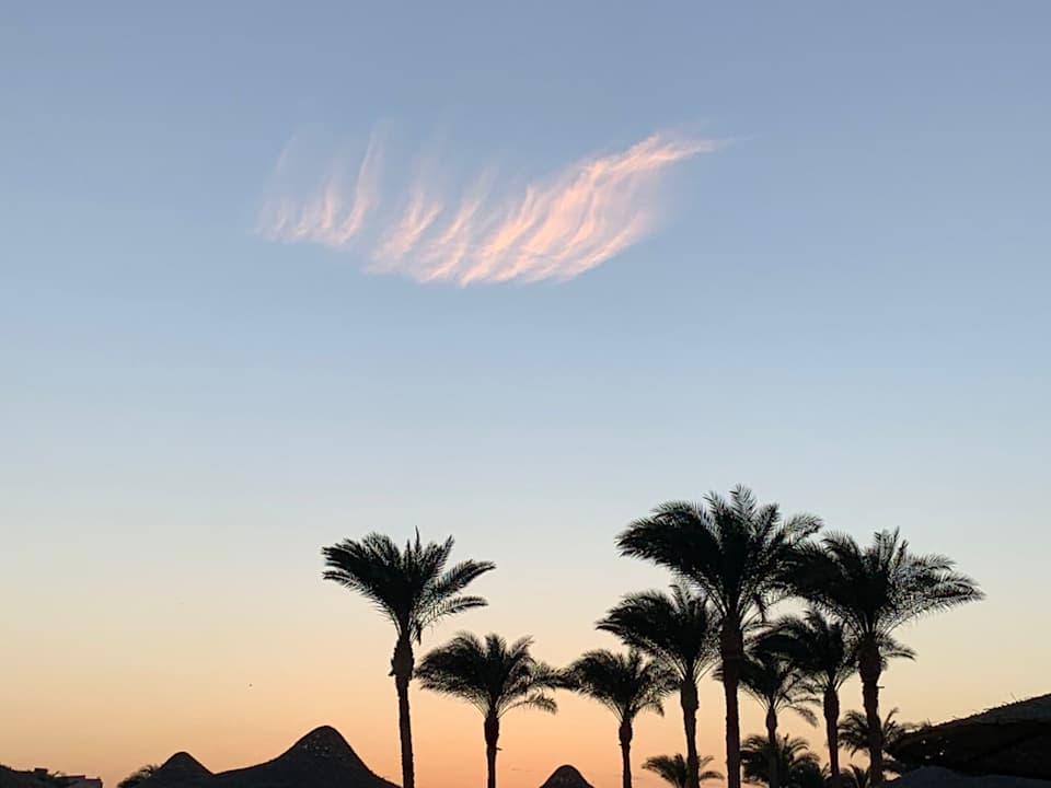 Sonnenuntergang vom Strand aus Richtung Hotelanlage