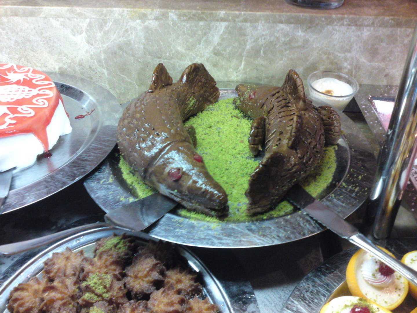 Zwei Fische aus Schokoladenpudding