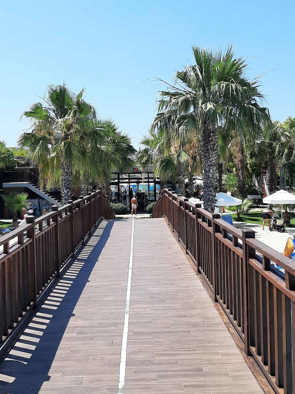 Brücke über den Hauptpool in Richtung Kinderpools und Rutschenanlagen