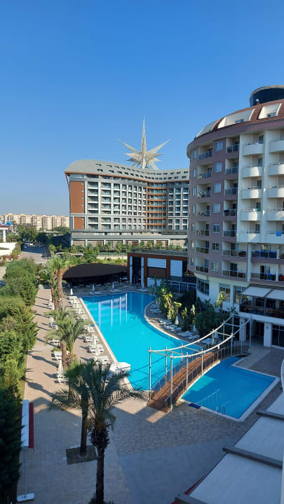 Unser Ausblick vom Balkon, da sieht man den ersten Pool (eher für Entspannen)