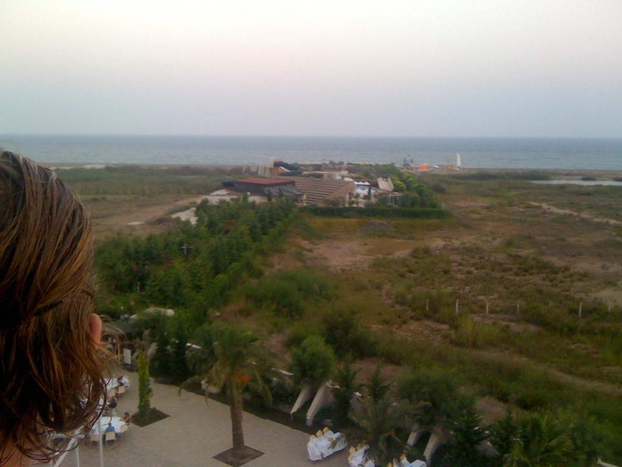Zimmerblick - Anlagenblick - Meerblick Direkter Blick über die Anlage zum Meer. Auserhalb war es "schrecklich". Somit ist auch der Meerblick nicht umwerfend.