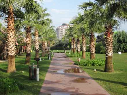 Grünstreifen zwischen Hotel und Strand