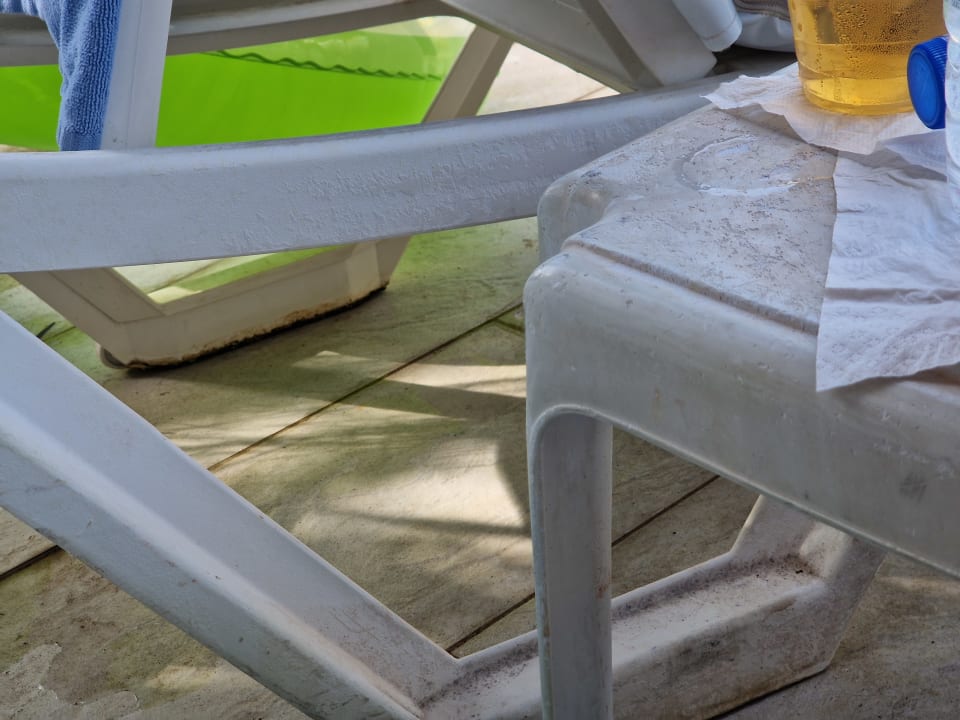 Liegen und Tisch am Pool