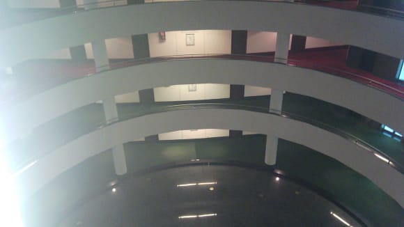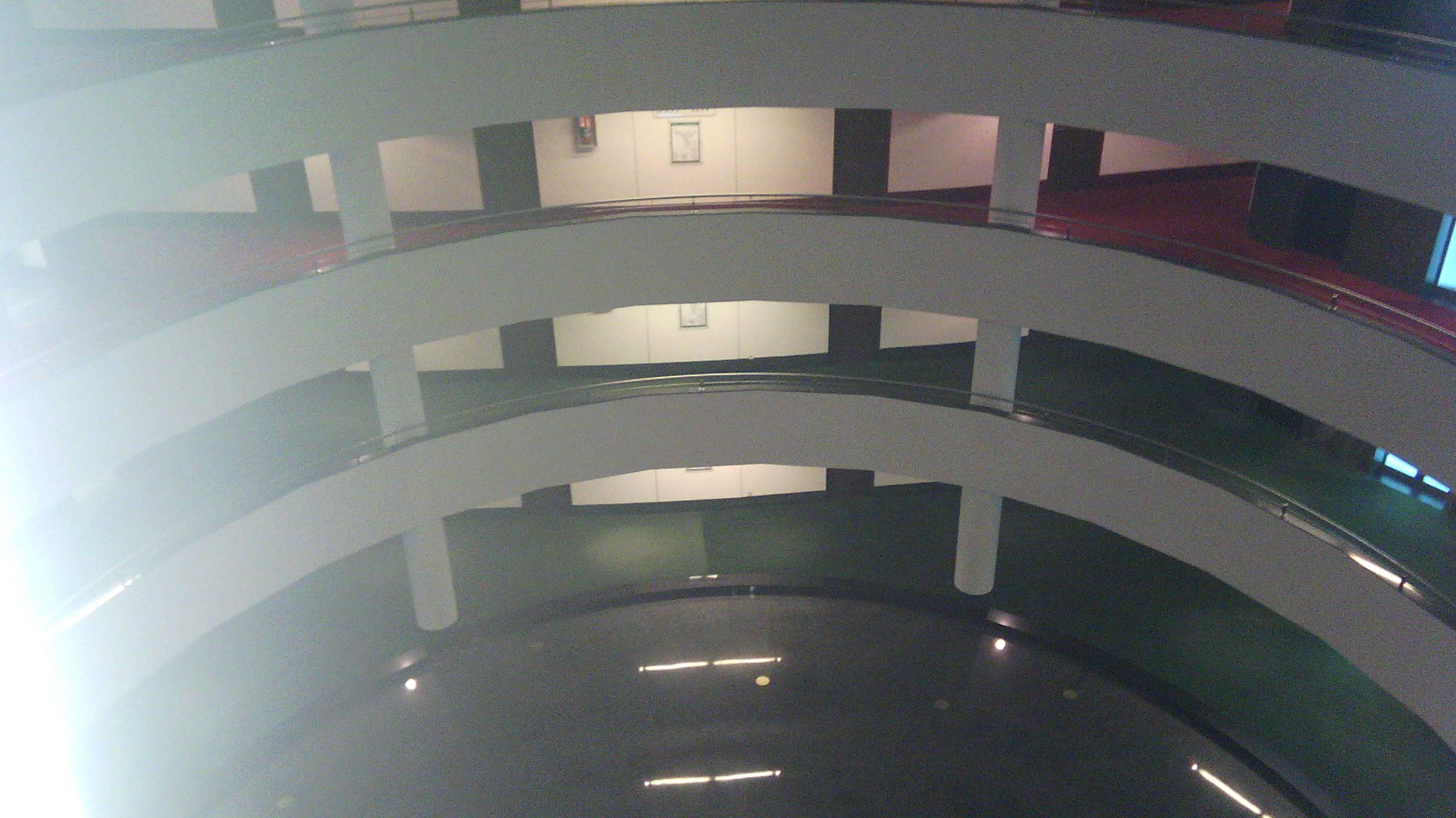 Blick vom Aufzug auf die Etagen