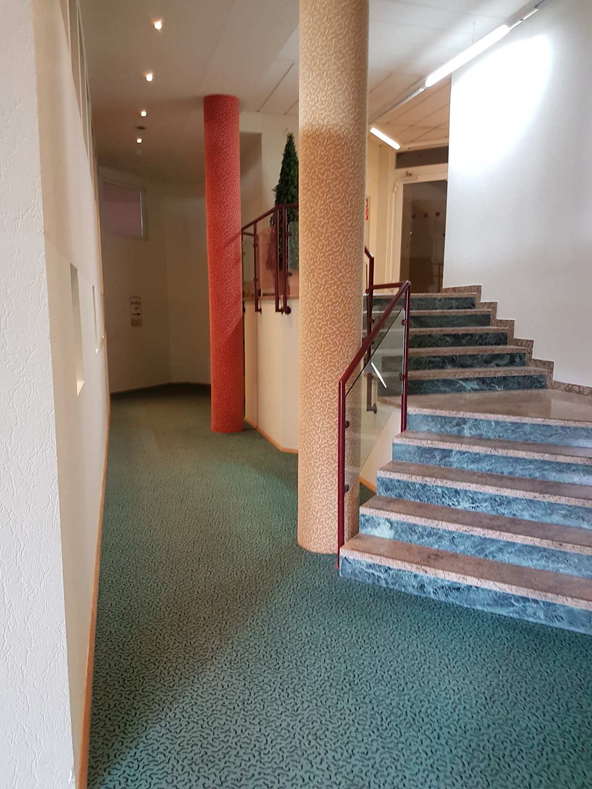 kein Hinweiß dass hinten im Eck sich der Fahrstuhl befindet.