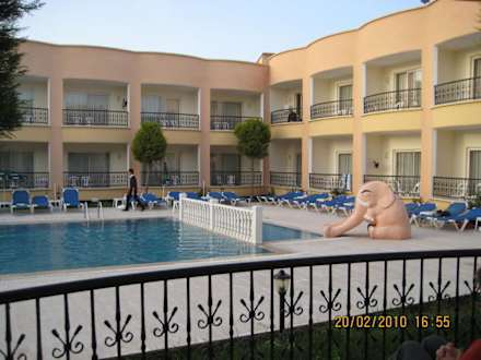 Pool und InnenbereichDie sonnigsten Zimmer im Februar waren die im rechten Gebaüdeteil, der sich ganz rechts unmittelbar an die Rezeption anschließt. Aber im Sommer ist es dort sicher unerträglich heiß. Die individuell regelbare Klimaanlage dürfte jedoch helfen.