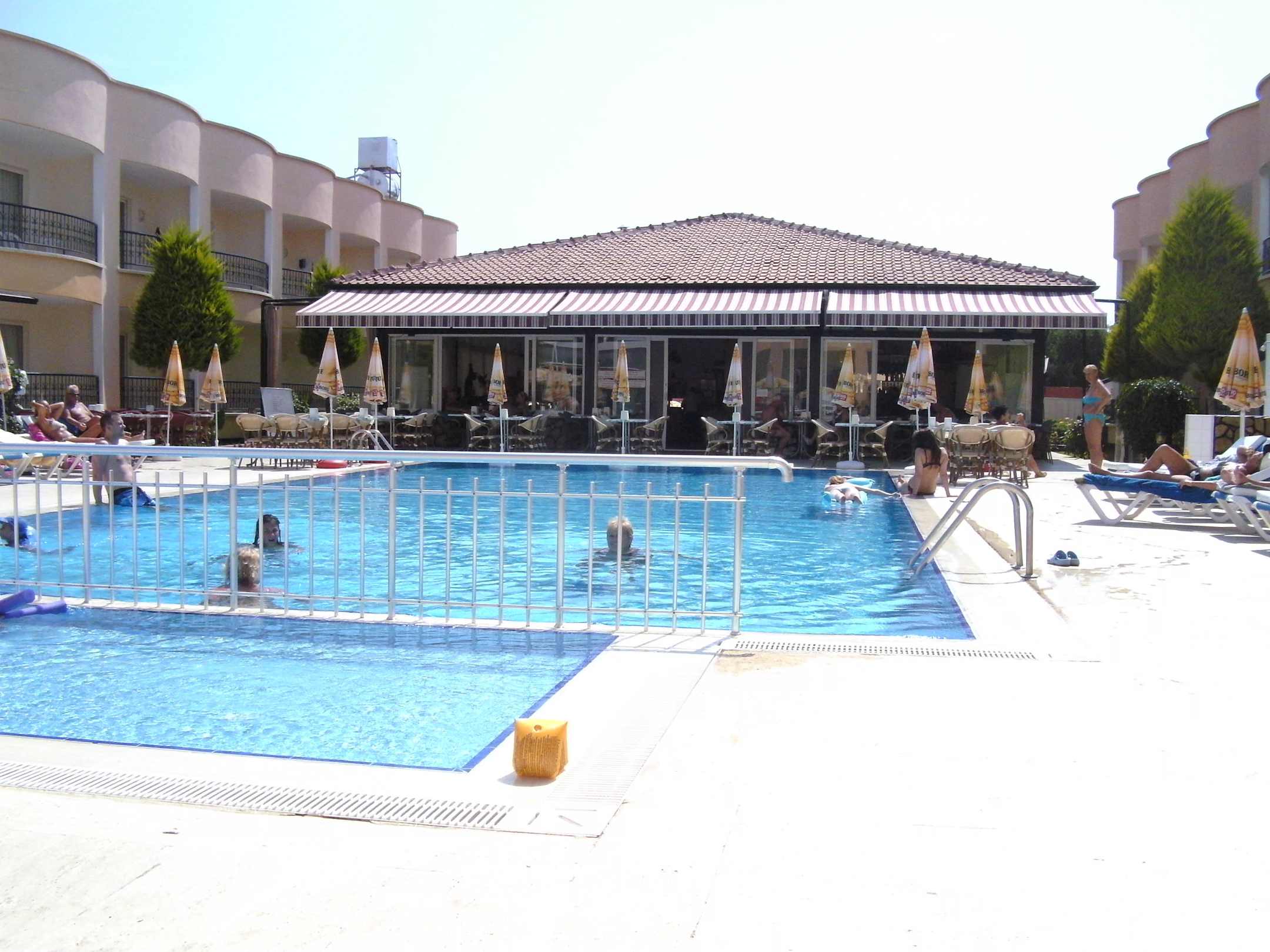 Blick über den Pool zum Restaurant