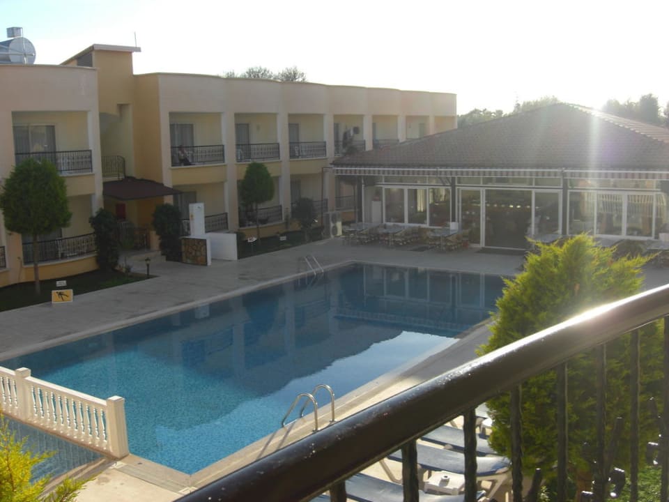 Blick vom Balkon auf das Restaurant