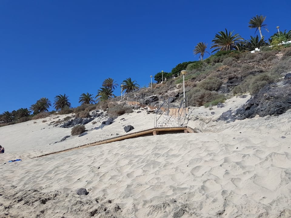Die Treppe zum Strand.Oben wo die Palmen stehen, ist schon der Hotelpool.