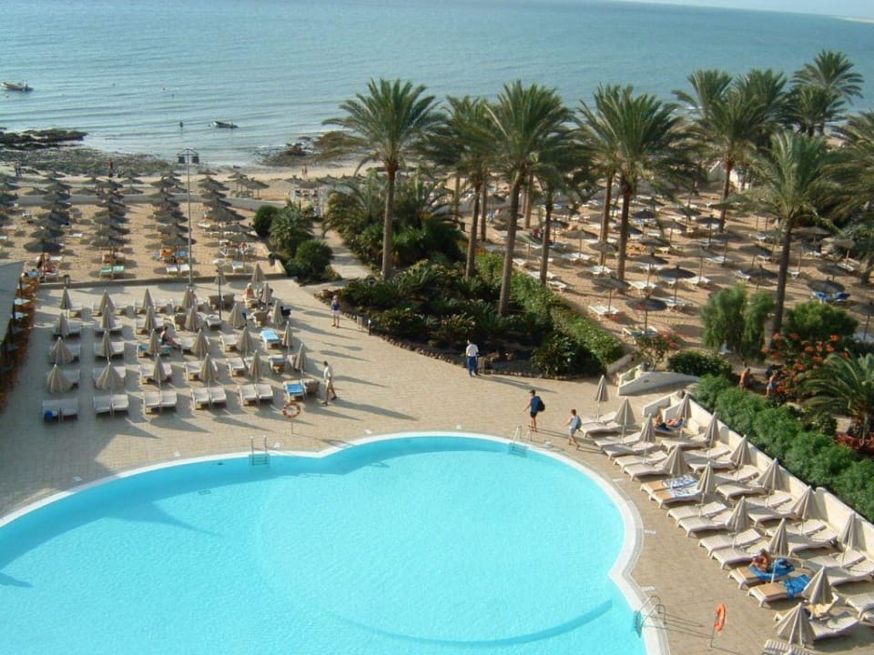 Blick vom Balkon zum Pool und Strand
