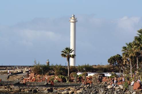 Leuchtturm von Höhe Hotel aus fotografiert