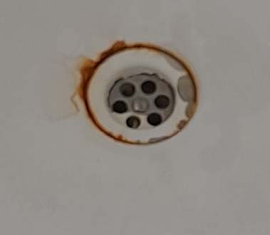 Der verrostete Abfluß in der Wanne