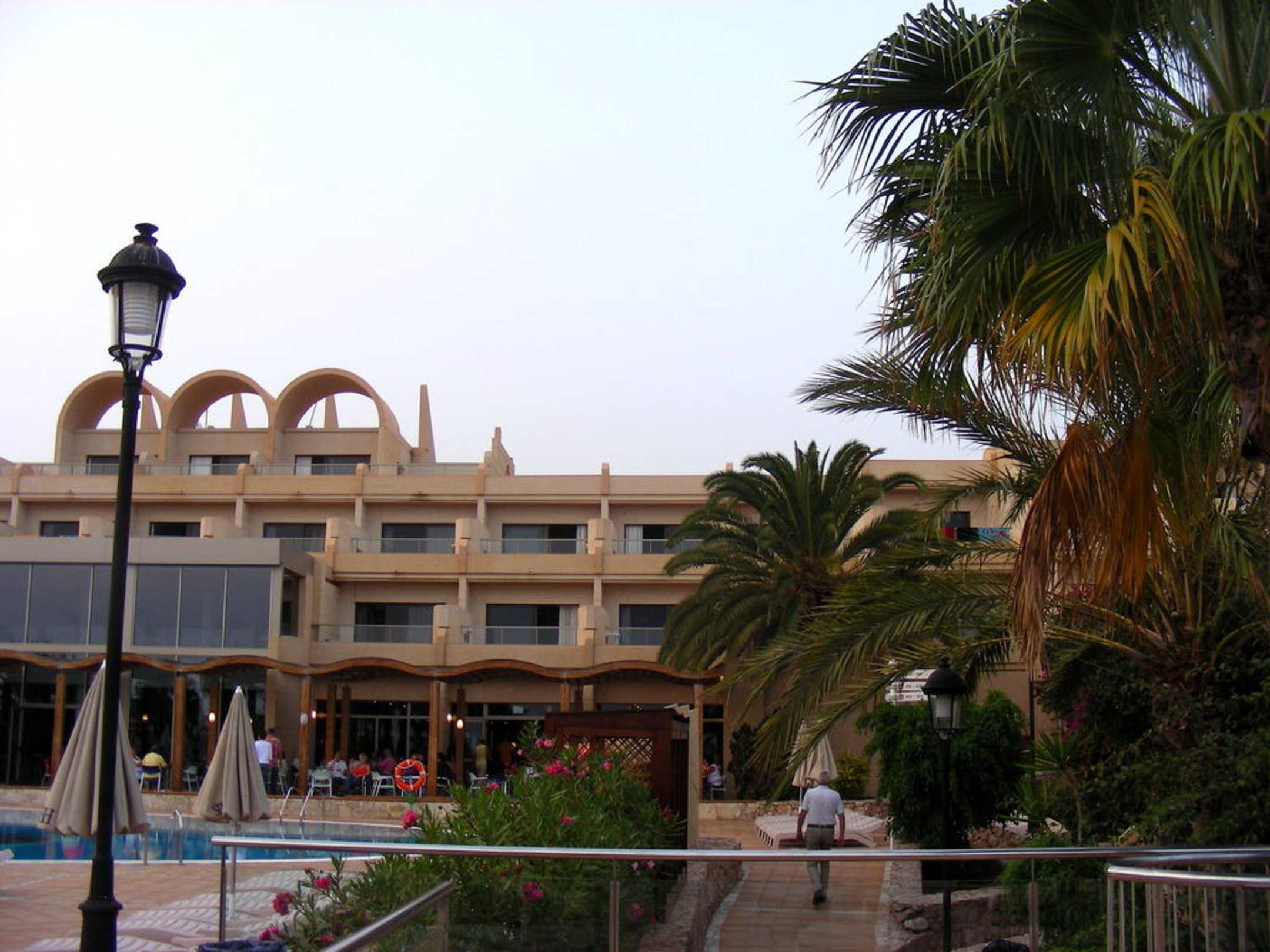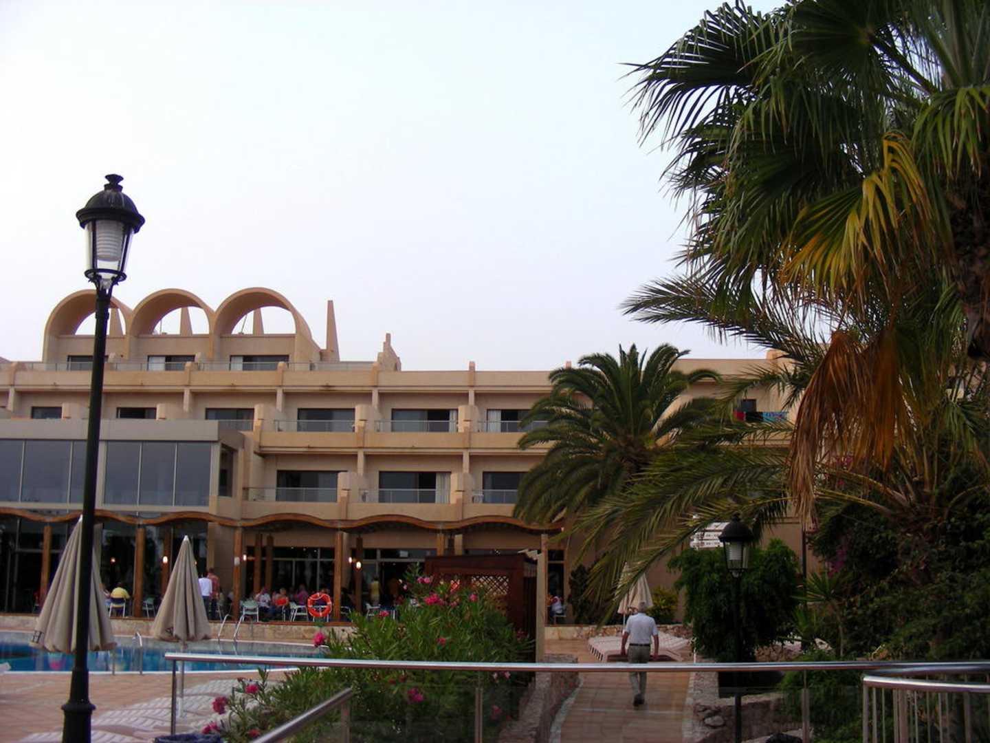Vom Pool aus aufs Hotel geschaut (unser Zimmer rechts hinter der Palme)