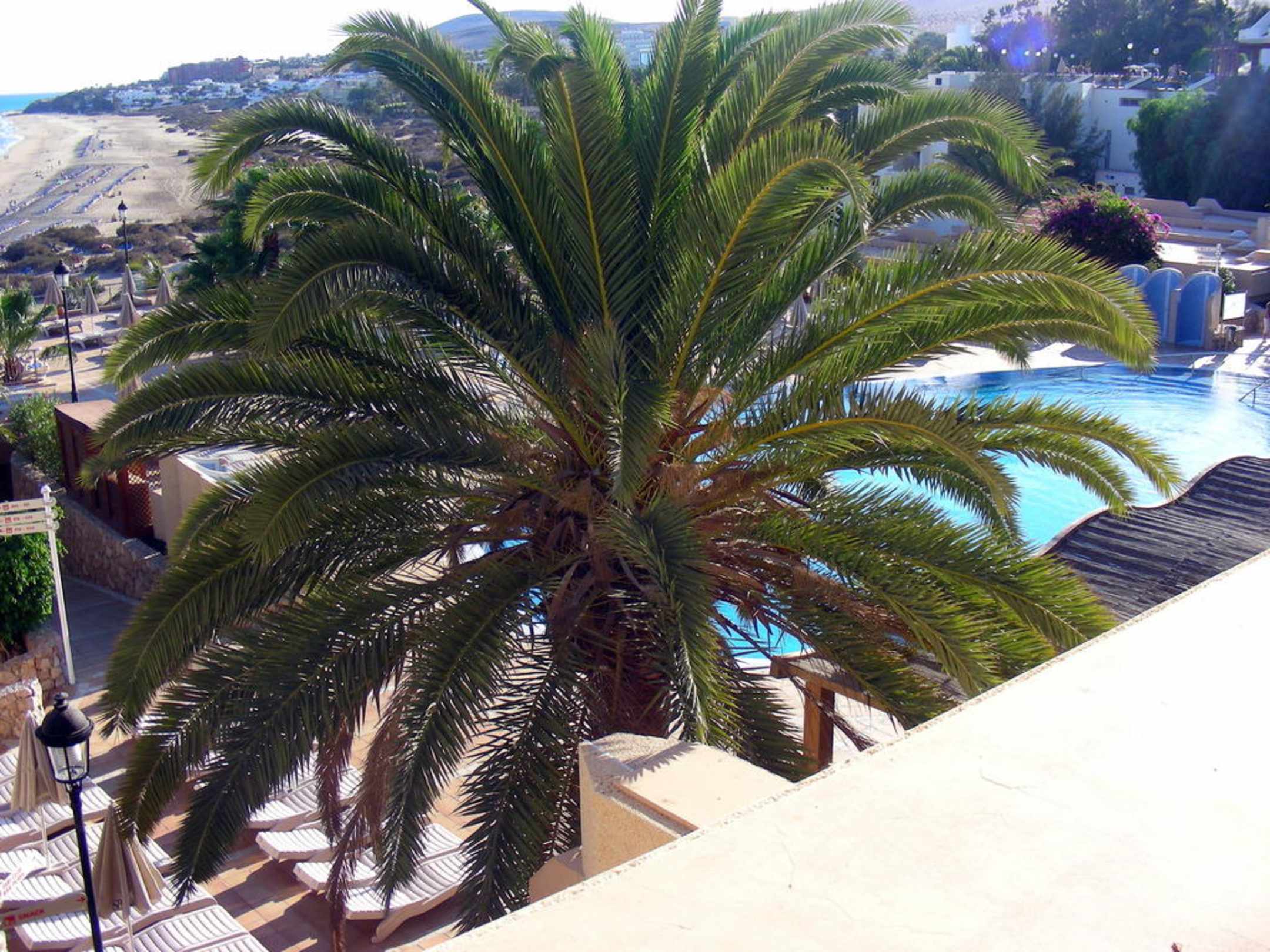 Ausblick vom Balkon auf den Pool